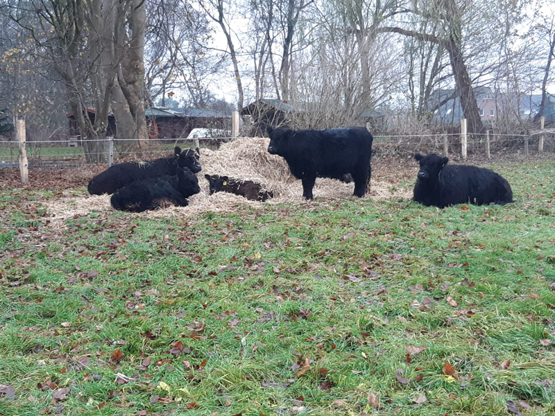Aktuell züchten und vermarkten wir Galloway auf eigenen Weiden.